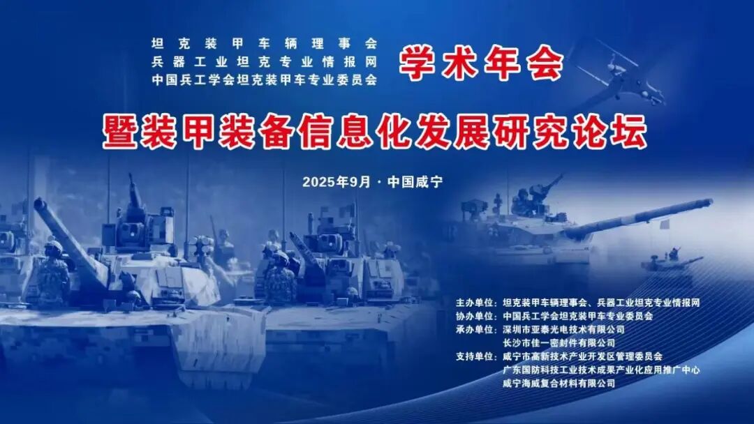由坦克裝甲車輛理事會、兵器工業(yè)坦克專業(yè)情報網(wǎng)主辦,深圳市亞泰光電技術有限公司承辦的"2025年坦克裝甲車輛學術年會暨裝甲裝備信息化發(fā)展研究論壇"將于9月17日至19日在湖北咸寧華信大酒店隆重舉行。