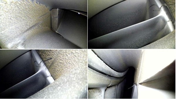 主要包括以下幾個方面:渦扇葉片的損傷和燒蝕情況,燃燒室內(nèi)的噴嘴積碳,火焰筒內(nèi)壁、穩(wěn)定器、燃油噴嘴防積碳帽罩表面的積碳。