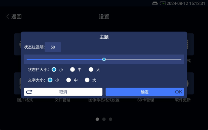 主題設置:可調節主界面狀態透明度,以及狀態欄大小,還有全局文字大